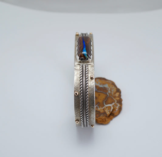 Handcrafted Boulder Opal and Sterling Silver Bracelet