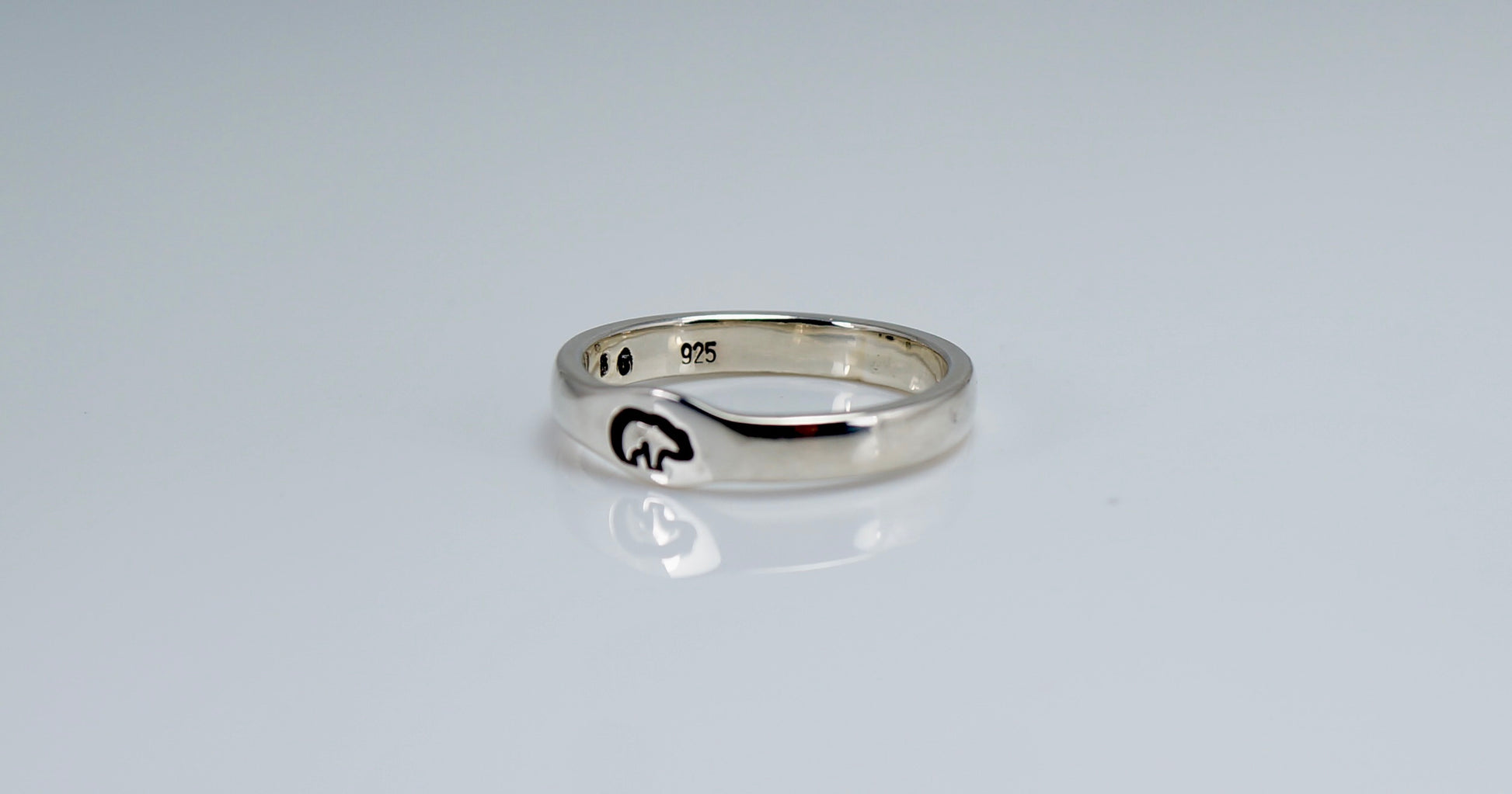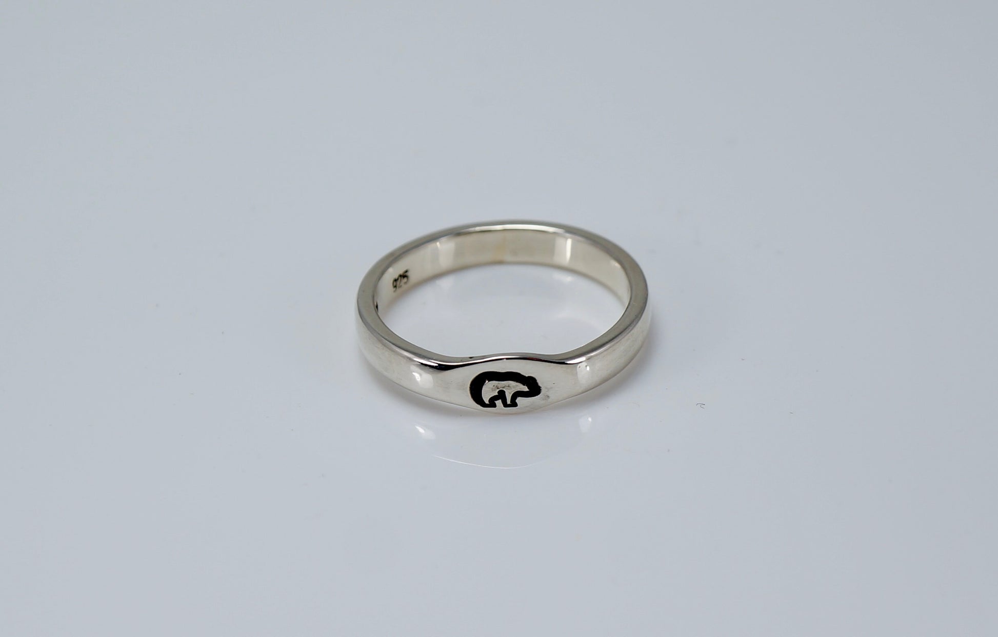 Wear a piece of Montana craftsmanship with this handcrafted sterling silver ring, featuring a custom bear stamp that captures the spirit of the West. Made from 8g half-round sterling silver wire, ensuring durability and a life-long piece. Wear it by itself or stacked. Size 8 1/2.